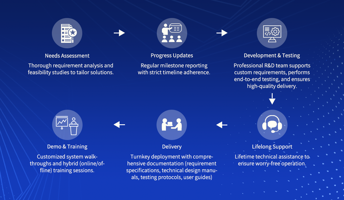 Hardware equipment integration Design of all kinds of intelligent terminal equipment integration schemes. Comprehensive intelligent solutionOne-stop intelligent device solution service. Software program developmentCustomized software program development configuration.